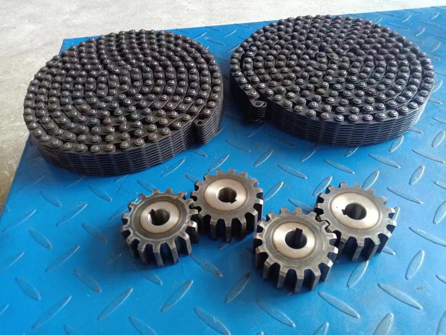 無聲鏈 齒形鏈輪 無聲鏈:也叫齒形鏈條,采用無聲齒形鏈輪帶動(dòng)運(yùn)轉(zhuǎn)傳動(dòng)。寧津縣榮發(fā)齒輪廠定做各種無聲齒形鏈條,無聲齒形鏈輪。我們根據(jù)客戶自己的情況,客戶選型成功,我們根據(jù)客戶的數(shù)據(jù)非標(biāo)定做各種齒形鏈條和無聲齒形鏈輪。齒形鏈條節(jié)距4.7625,6.35 9.525 12.7 15.875 19.05 25.4 31.75 38.1毫米的鏈條都能做,無聲齒形鏈輪根據(jù)客戶的齒數(shù)和外徑,內(nèi)孔,鍵槽定做。無聲齒形鏈條的獨(dú)特優(yōu)點(diǎn):高速,無噪音,高承載傳動(dòng)能力,轉(zhuǎn)矩大等等優(yōu)點(diǎn),逐漸取代精密滾子鏈條和同步帶。