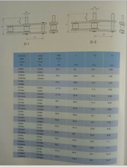 鏈號(hào)C232AH C232AHL加厚大滾珠的長(zhǎng)銷(xiāo)鏈條 凸軸鏈條 AH的意思是加厚,就是這個(gè)型號(hào)的鏈條能夠制造成加厚型號(hào)和大滾珠加厚型的,您的需求是什么就能夠幫您做成什么形式的。這種鏈條的節(jié)距是101.6毫米,銷(xiāo)軸直徑是14.27毫米,加長(zhǎng)的銷(xiāo)軸長(zhǎng)度是38.1毫米,加長(zhǎng)銷(xiāo)軸總長(zhǎng)度是99.3毫米。都是真實(shí)的參考數(shù)據(jù)。