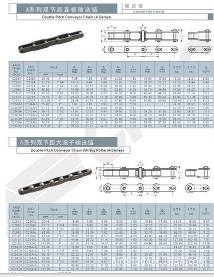 鏈號C2062 節(jié)距38.1毫米的雙節(jié)距加長銷軸鏈條 雙節(jié)距的加長銷軸鏈條的節(jié)距最小的是25.4毫米,是直板的輸送鏈條,加長銷軸鏈條分為AB系列精密滾子8字傳動鏈條和雙節(jié)距直板輸送鏈條。