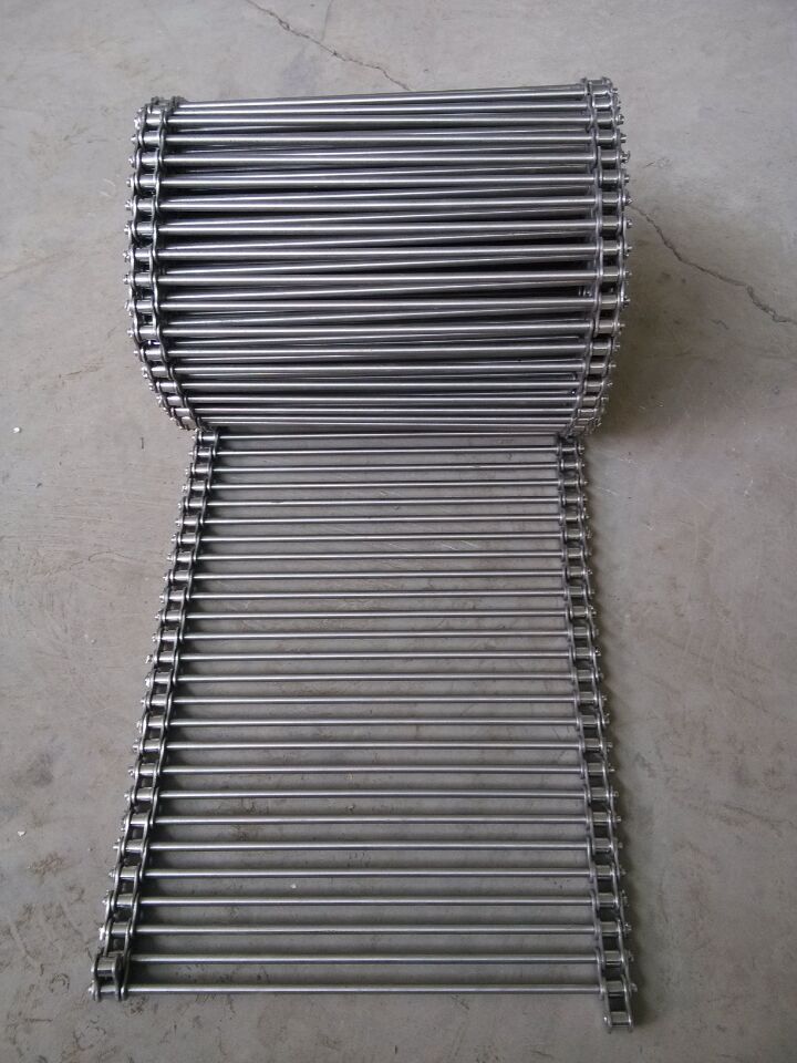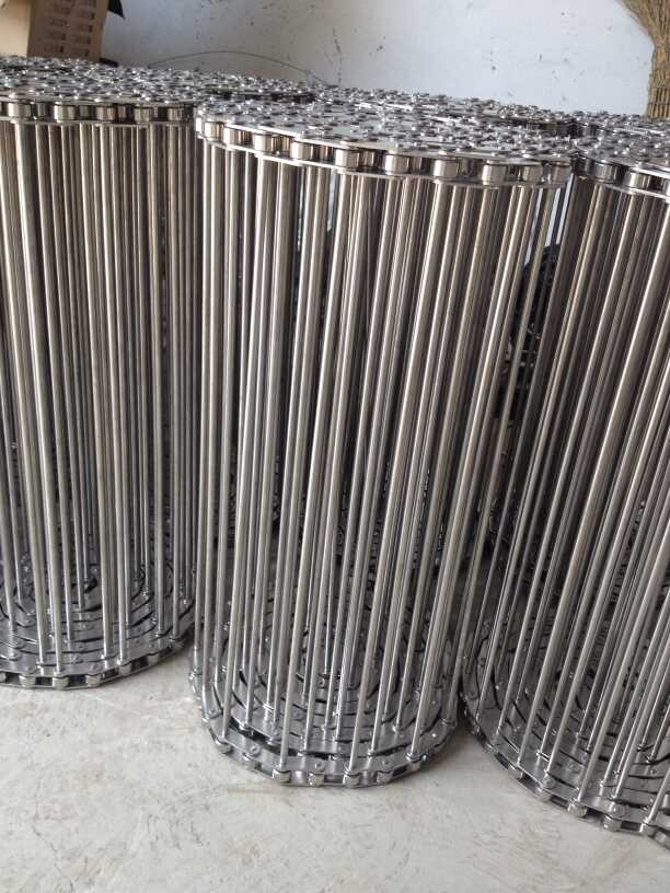 鏈桿輸送帶:一種輸送帶,采用金屬圓棒車臺,兩邊鑲上鏈條做成的輸送帶。鏈桿輸送帶兩邊的鏈條可以做成6.35毫米,9.525毫米,12.7毫米,15.875毫米,19.05毫米,25.4毫米,31.75毫米,38.1毫米,50.8毫米,63.5毫米,76.2毫米,101.6毫米等等。