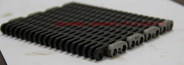 標準叫法是無聲齒形鏈帶:也叫網帶,輸瓶機網帶,是玻璃機械行列式制瓶機延長支架和橫向輸瓶機上的一種無聲齒形輸送帶。