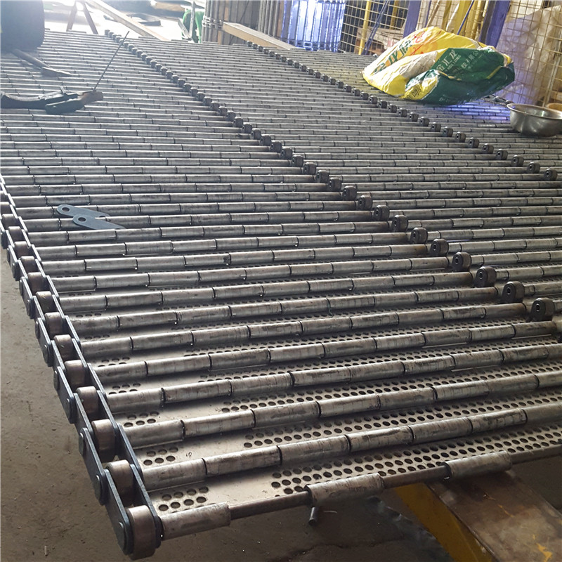 給客戶定做的寬度3米的鏈板輸送帶,反面用了2排的拖輪。