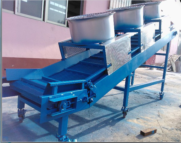 就是安裝在正火爐后面對(duì)金屬件進(jìn)行風(fēng)冷降溫,空氣降溫的輸送機(jī),耐高溫,風(fēng)冷效果好,耐沖擊力,抗砸。