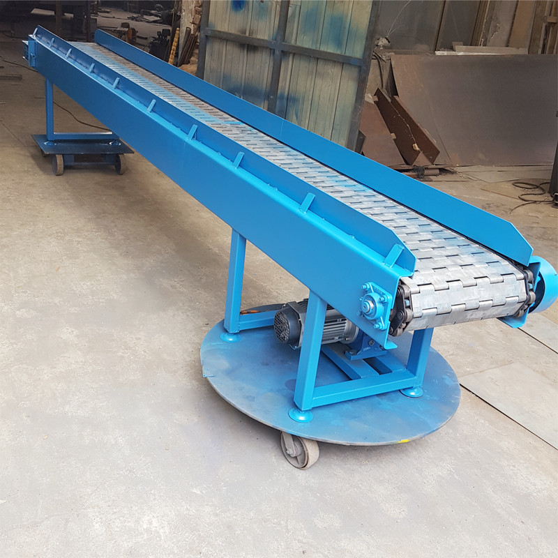 1,如果輸送機是提升機,是傾斜爬坡輸送機,輸送的時候帶角度提升輸送,盡量在輸送帶上加上橫擋板,在輸送帶上加上防滑隔板。