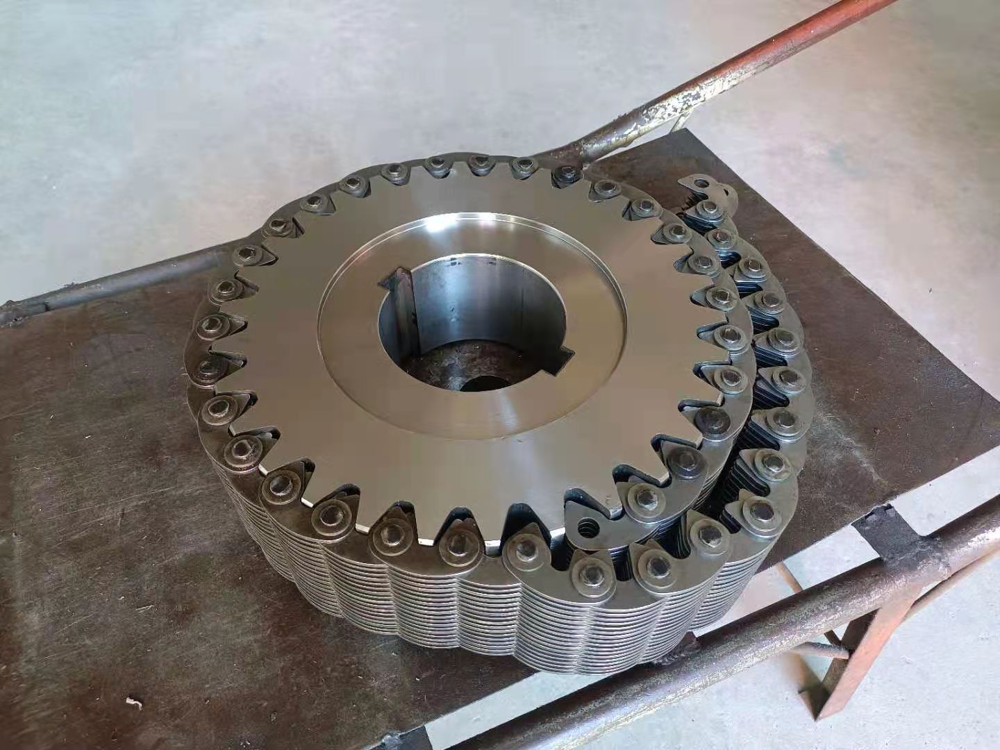 無聲鏈 齒形鏈輪 無聲鏈:也叫齒形鏈條,采用無聲齒形鏈輪帶動運轉(zhuǎn)傳動。寧津縣榮達機械制造有限責任公司定做各種無聲齒形鏈條,無聲齒形鏈輪。我們根據(jù)客戶自己的情況,客戶選型成功,我們根據(jù)客戶的數(shù)據(jù)非標定做各種齒形鏈條和無聲齒形鏈輪。齒形鏈條節(jié)距4.7625,6.35 9.525 12.7 15.875 19.05 25.4 31.75 38.1毫米的鏈條都能做,無聲齒形鏈輪根據(jù)客戶的齒數(shù)和外徑,內(nèi)孔,鍵槽定做。無聲齒形鏈條的獨特優(yōu)點:高速,無噪音,高承載傳動能力,轉(zhuǎn)矩大等等優(yōu)點,逐漸取代精密滾子鏈條和同步帶。