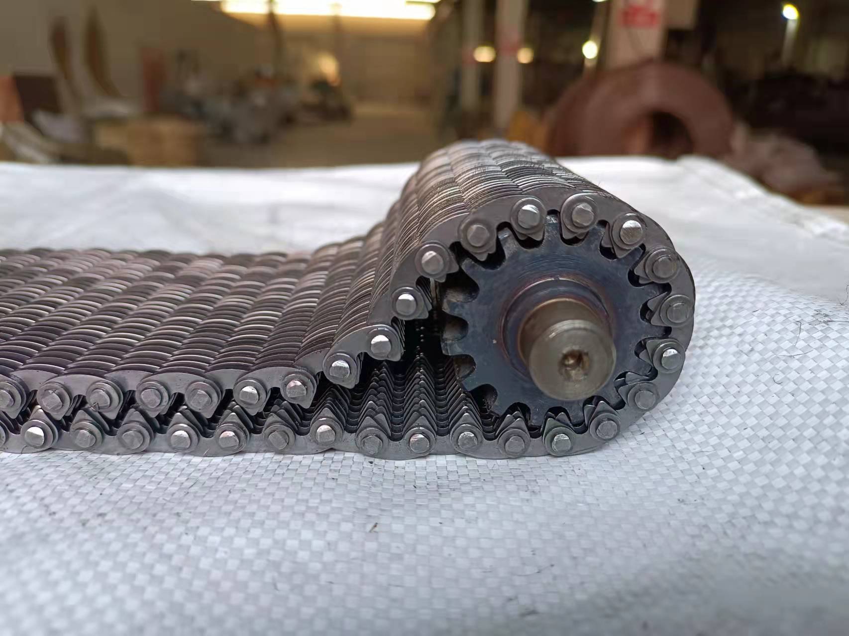 雙銷軸鉸鏈通常用兩個(gè)帶有凸面的銷軸。當(dāng)與鏈輪嚙合時(shí)鉸鏈齒形鏈條兩凸面相對(duì)滾動(dòng)。典型雙銷軸鉸鏈條齒形鏈條。雙銷軸鉸鏈齒形鏈條通過(guò)消除滑動(dòng)極大地減少了摩擦和磨損。雙銷軸鉸鏈條齒形鏈條實(shí)際上也消除了多邊形效應(yīng)影響。銷軸的彎曲表面起一種凸輪作用,節(jié)距在每個(gè)鏈節(jié)嚙合輪齒時(shí)會(huì)稍微增大后再減小,這種節(jié)距變化設(shè)計(jì)平衡了多邊效應(yīng)產(chǎn)生的速度變化