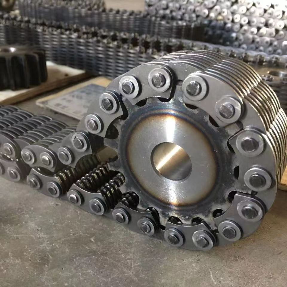齒形鏈又稱無聲鏈(Silent Chain),屬于傳動(dòng)鏈的一種形式。我國(guó)的國(guó)家標(biāo)準(zhǔn)為:GB/T10855-2003《齒形鏈和鏈輪》。齒形鏈?zhǔn)怯梢幌盗械凝X鏈板和導(dǎo)板交替裝配且銷軸或組合的鉸接元件連接組成,相鄰節(jié)距間為鉸連節(jié)。根據(jù)導(dǎo)向型式可分為:外導(dǎo)式齒形鏈、內(nèi)導(dǎo)式齒形鏈和雙內(nèi)導(dǎo)齒形鏈.齒形鏈又稱無聲鏈,屬于傳動(dòng)鏈的一種形式。齒形鏈?zhǔn)且环N應(yīng)用廣泛的重要機(jī)械基礎(chǔ)件,主要用在高速、重載、低噪音、大中心距的工況下,其傳動(dòng)性能優(yōu)于齒形帶傳動(dòng)、齒輪傳動(dòng)以及磙子鏈傳動(dòng),以成為眾多行業(yè)對(duì)傳動(dòng)形式之一,以嚙合形式分可分為內(nèi)嚙合齒形鏈、外嚙合齒形鏈和內(nèi)外復(fù)合嚙合齒形鏈,其中內(nèi)外復(fù)合嚙合齒形鏈的噪音小,應(yīng)用也廣泛。主要特點(diǎn):1.噪音小 齒形鏈?zhǔn)峭ㄟ^工作鏈板與鏈輪齒的漸開線齒形進(jìn)行嚙合傳遞動(dòng)力,與滾子鏈和套筒鏈相比其多邊形效應(yīng)明顯降低,沖擊小、運(yùn)動(dòng)平穩(wěn)、嚙合噪音較小。2.可靠性較高 齒形鏈的鏈節(jié)是多片式結(jié)構(gòu),當(dāng)其中個(gè)別鏈片在工作中遭到破壞時(shí)并不影響整根鏈條的工作,使人們能夠及時(shí)發(fā)現(xiàn)并更換,如需增加承載能力只需在寬度方向較小尺寸(增加鏈片排數(shù))。3.運(yùn)動(dòng)精度高 齒形鏈各鏈節(jié)磨損伸長(zhǎng)均勻,可保持較高的運(yùn)動(dòng)精度。齒形鏈條主要應(yīng)用范圍:齒形鏈主要應(yīng)用在紡織機(jī)械和無心磨床,傳送帶機(jī)械設(shè)備。齒形鏈條的種類:CL06,CL08,CL10,CL12,CL16,CL20。根據(jù)導(dǎo)向分:內(nèi)導(dǎo)的齒形鏈條和外導(dǎo)的齒形鏈條,內(nèi)外復(fù)合的齒形鏈條