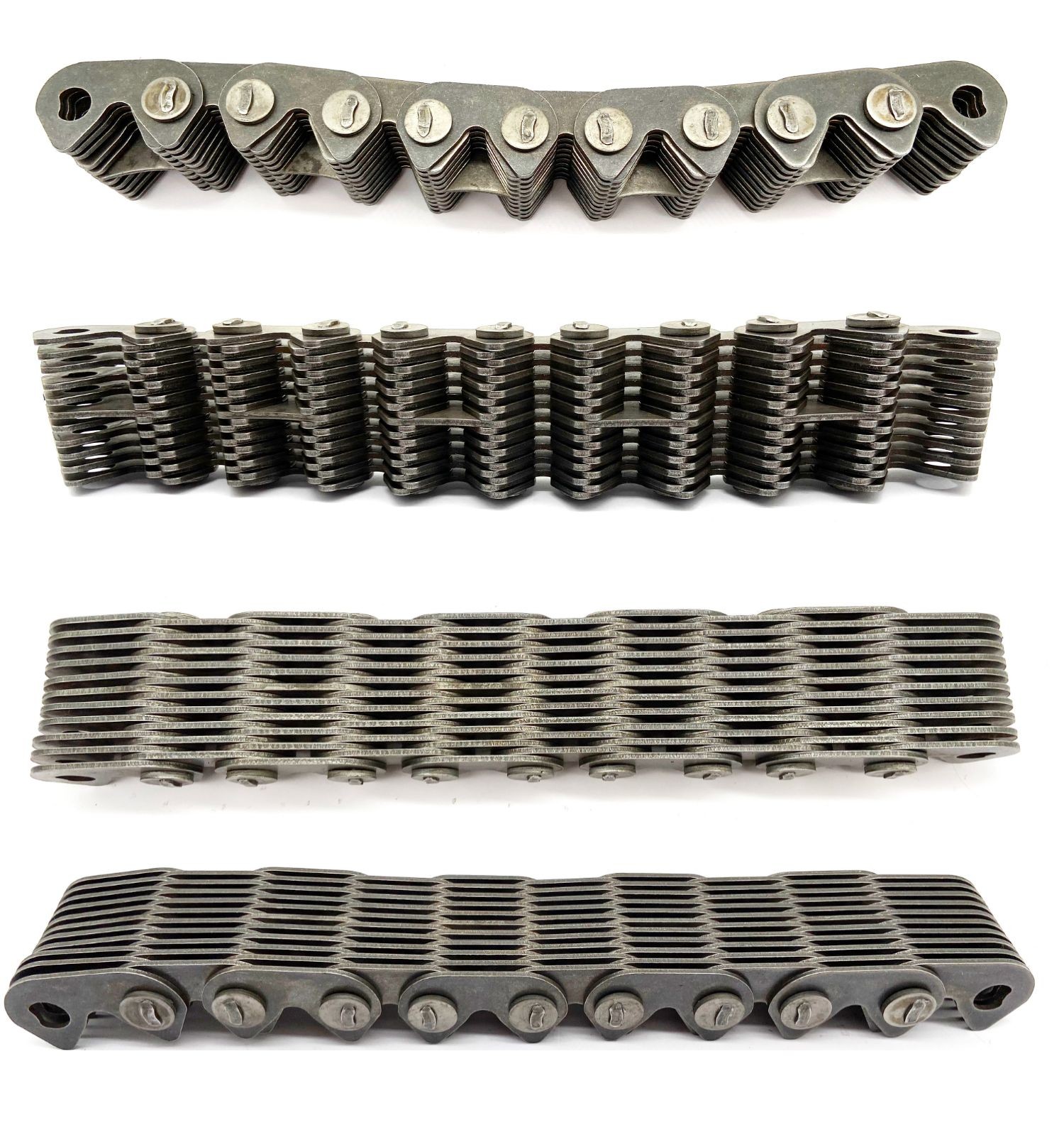 HDL585 哈瓦齒形鏈條 HDL325 無聲齒形鏈條 HDL650哈瓦齒形鏈條鏈輪 HDL3100 HDL1080 HDL550 齒形鏈條傳動有著噪音小,可靠性較高,運動精度高(其運轉平滑性強于任何其他類型的鏈條)等比較突出的特點,所有齒形鏈條已成為一種應用廣泛的重要基礎零件部件。特別是在高速,重載,低噪音要求,大中心距離的工況下,其傳動性能優(yōu)于齒形帶傳動,普通齒輪傳動及滾子鏈條傳動,齒形鏈條已經(jīng)發(fā)展為汽車,機床,汽輪機,石油機械,軍用機械等眾多行業(yè)的傳動類型之一,如機床主傳動,發(fā)動機正時傳動及重要的操縱機構等等。另外齒形鏈條在高速運轉時,往往還要達到低噪音甚至靜音,所有齒形鏈條在許多場合還叫做靜音鏈條或者無聲鏈條,外導式齒形鏈條(圓銷式)內(nèi)導齒形鏈條滾銷式 雙內(nèi)導齒形鏈條 軸瓦襯瓦式齒形鏈條 雙面嚙合齒形鏈條 帶過渡彎板鏈節(jié)的齒形鏈條 單面齒形鏈條 雙面?zhèn)鲃育X形鏈條 傳動齒形鏈條目前國內(nèi)使用的標準,GB/T 10855-2003,Inverted tooth silent chain and sprocket
