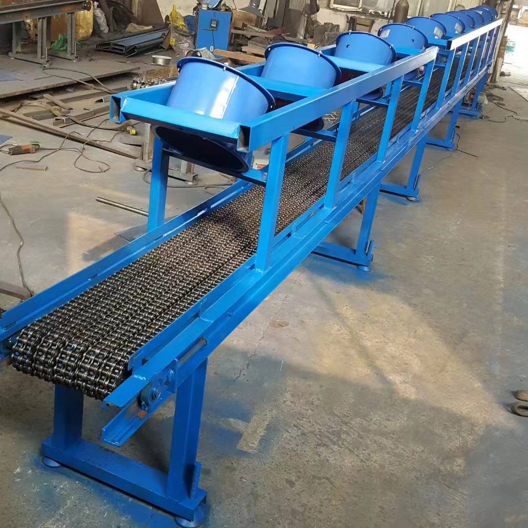 輸送鏈 鍛造自動化輸送鏈 傳送鍛壓輸送機(jī),鍛打輸送機(jī),熱鍛紅沖輸送機(jī),鍛造熱處理淬火提升機(jī),熱鍛造件降溫風(fēng)冷輸送機(jī) 鏈條輸送機(jī) 鏈板輸送機(jī) 板式提升機(jī) 鏈條片輸送機(jī) 帶風(fēng)機(jī)降溫輸送機(jī) 滾筒輸送機(jī) 熱鍛造件輸送機(jī):是用于鍛造行業(yè),用來輸送鍛造件的一種傳送帶,可以用于輸送圓鋼,加熱爐出來的紅毛坯,紅熱方鋼圓鋼,用于各個鍛壓機(jī)之間鍛件的輸送,用于水槽油槽鍛造件的熱處理淬火,用于熱鍛造件的風(fēng)冷水冷降溫輸送。鍛造生產(chǎn)線的各個輸送傳送。 功能特點 1.速度快慢可調(diào),有無極調(diào)速電機(jī)和變頻器控制柜控制速度快慢,操作簡單 2,輸送速度快,精密鏈條適合高速傳送,耐磨,適合長時間高速運轉(zhuǎn)傳送 3,輸送機(jī)可連續(xù)輸送,可間歇性輸送。 4,輸送機(jī)的寬度根據(jù)被輸送的金屬件的大小靈活的設(shè)計輸送機(jī)的寬度 長度根據(jù)輸送的距離來設(shè)計。5,輸送機(jī)可以做成水平直輸送的,提升爬坡輸送的。第一集:輸送鏈 耐高溫傳送鏈條 鍛造輸送鏈 鍛造輸送機(jī) 鍛造輸送鏈 冷卻鏈 降溫輸送鏈 熱鍛造輸送鏈 鍛造輸送鏈具有耐高溫、不變形等特點,且重量輕而強(qiáng)度大,耐磨性好,抗沖擊力強(qiáng),維護(hù)性好等優(yōu)勢。榮達(dá)擁有單排輸送鏈、雙排輸送鏈、串桿輸送鏈、板鏈輸送鏈、網(wǎng)鏈輸送鏈等不同形態(tài)的產(chǎn)品。根據(jù)不同類型的產(chǎn)品,工藝方式的不同,滿足客戶的各種不同應(yīng)用場景需求。 榮達(dá)機(jī)械可以根據(jù)客戶的使用要求和現(xiàn)場安裝的需要,設(shè)計、制造各種規(guī)格的產(chǎn)品和設(shè)備,為客戶提供合理價格的優(yōu)質(zhì)產(chǎn)品。1,耐高溫2,耐磨性好 3,運行穩(wěn)定4,抗沖擊力強(qiáng) 5,類型多并可定制
